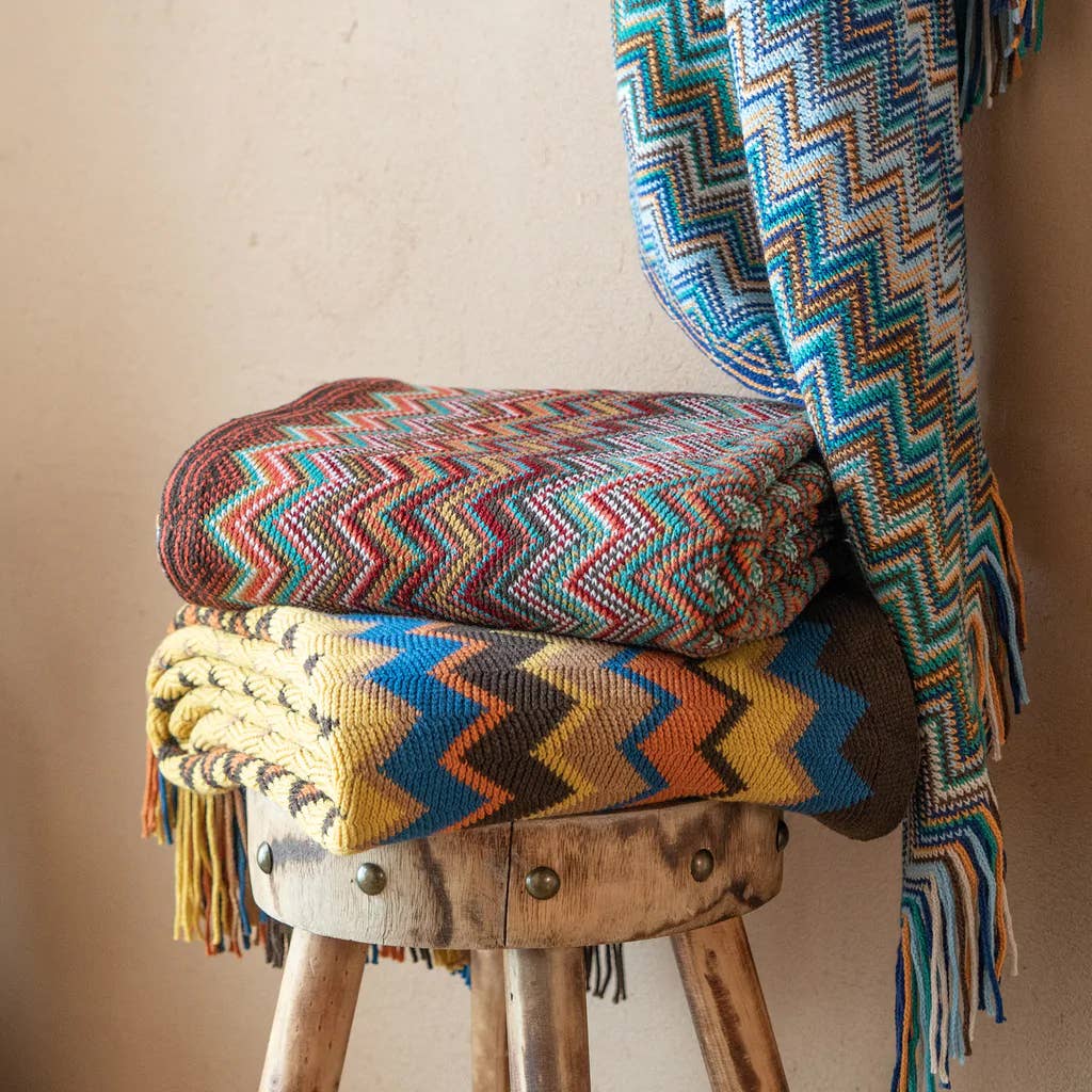 West Path Aztec Diamond Mexican Falsa Blanket / Warm Rainbow & Khaki