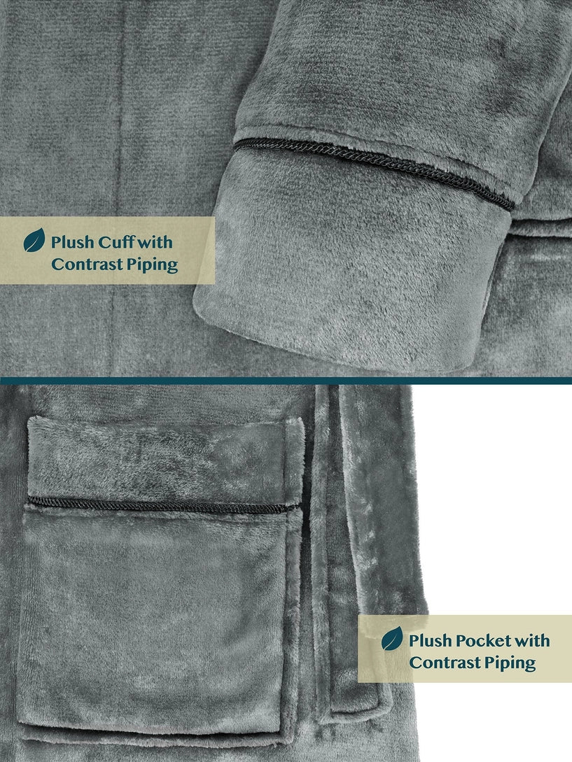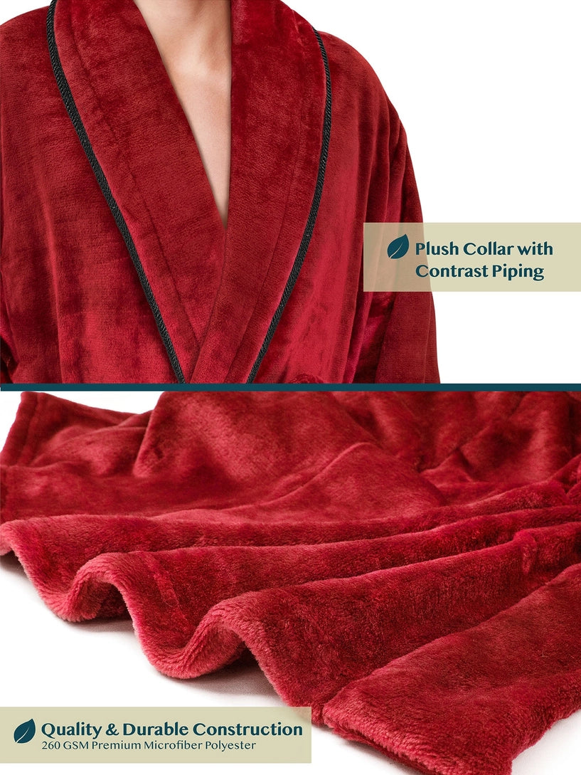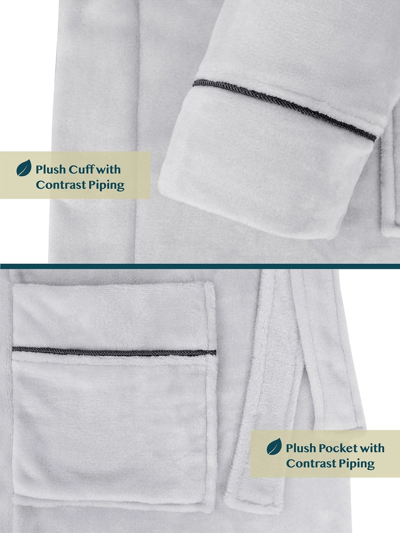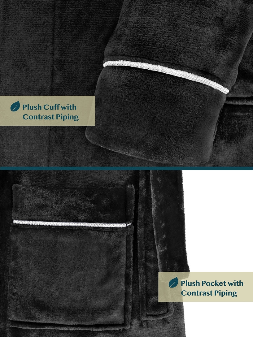 What sets this robe apart is its contrast piping — a crisp stripe outlining the collar, cuffs, and pocket edges — adding a touch of refinement to its cozy design. Whether unwinding after a long day, lounging on a weekend morning, or stepping out of the shower, this robe is a versatile staple. It also makes a thoughtful and practical gift for any man who values comfort with a polished look.