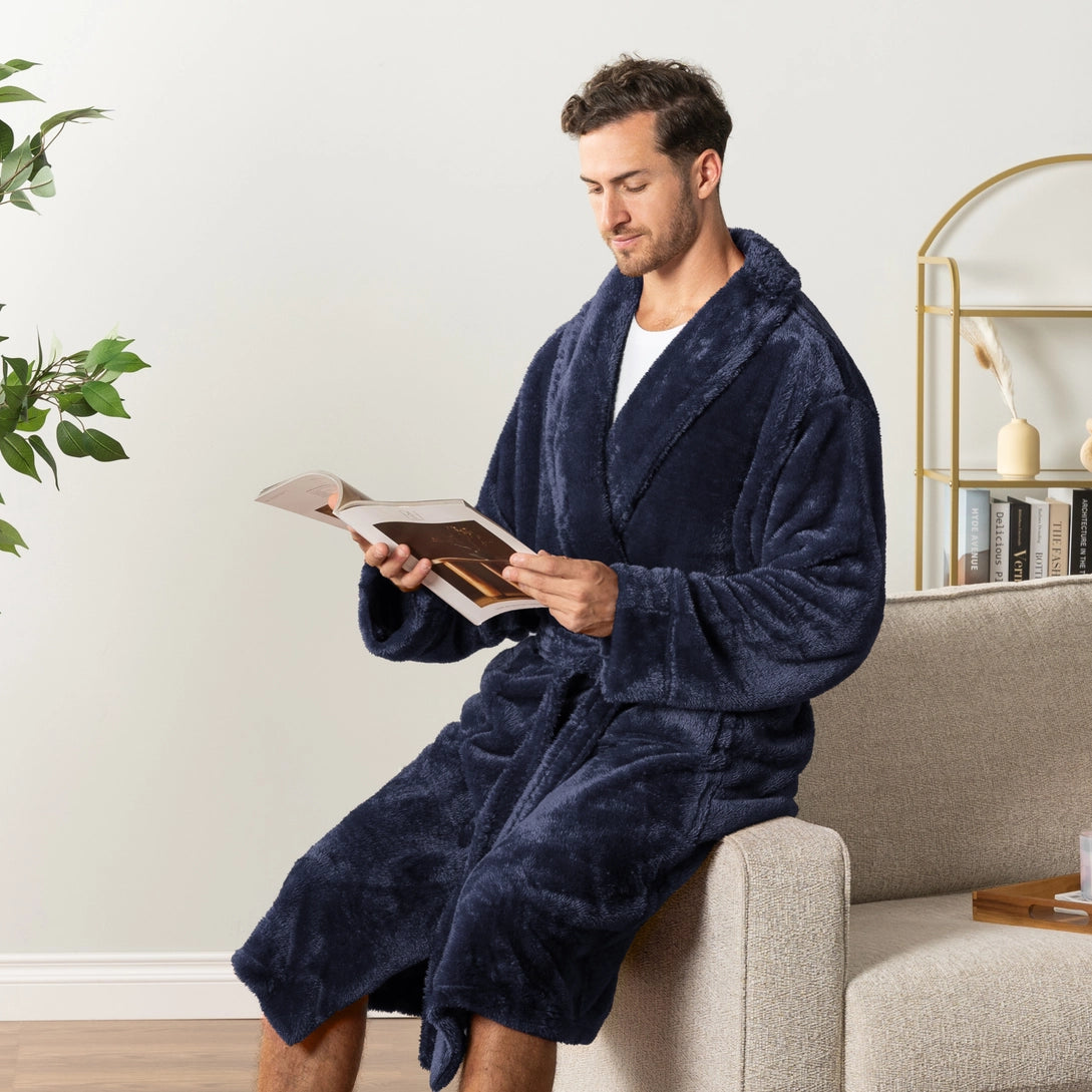 Wrap yourself in warmth and timeless comfort with the Pavilia Sherpa Fleece Men’s Robe, a classic fleece robe designed to be both practical and indulgent. Crafted from plush sherpa fleece, it delivers cozy insulation without feeling heavy, making it ideal for cold mornings, relaxed evenings, or stepping out of the shower. Its sherpa collar, cuffs, and pockets give the robe a rugged yet refined look that balances everyday function with undeniable comfort.