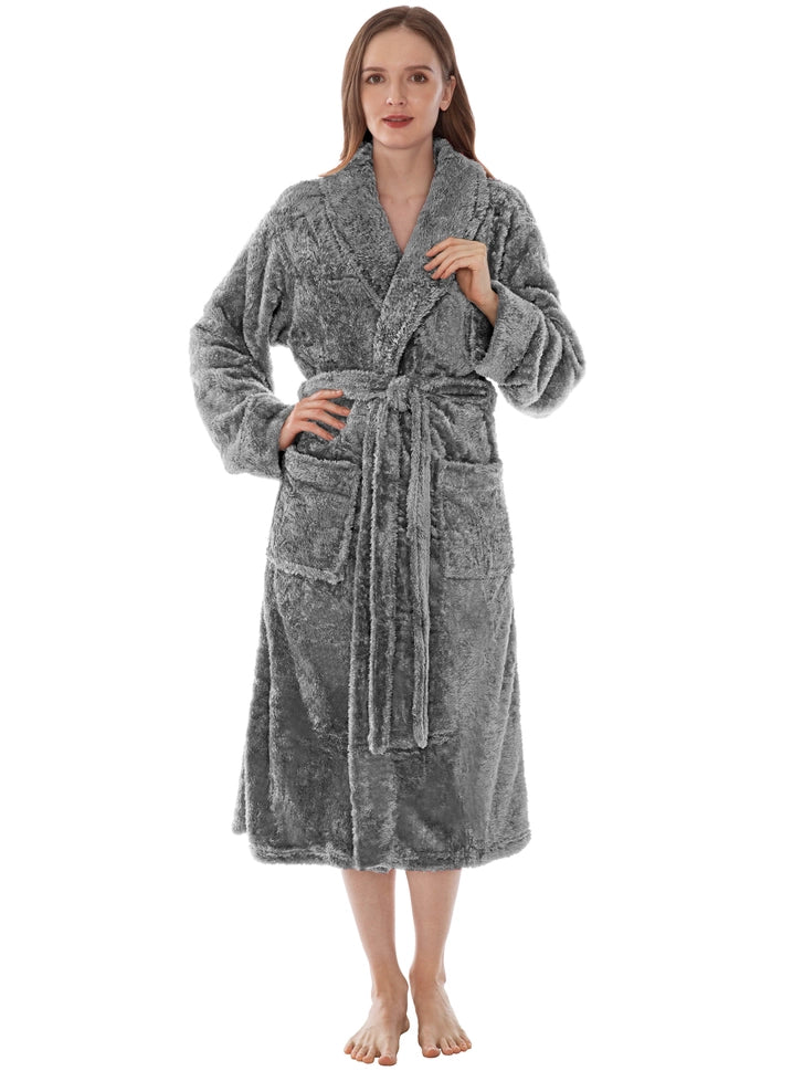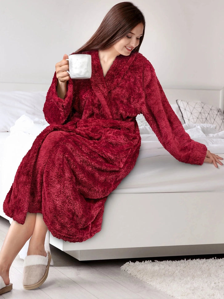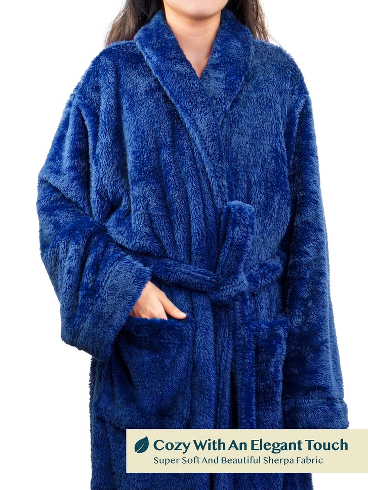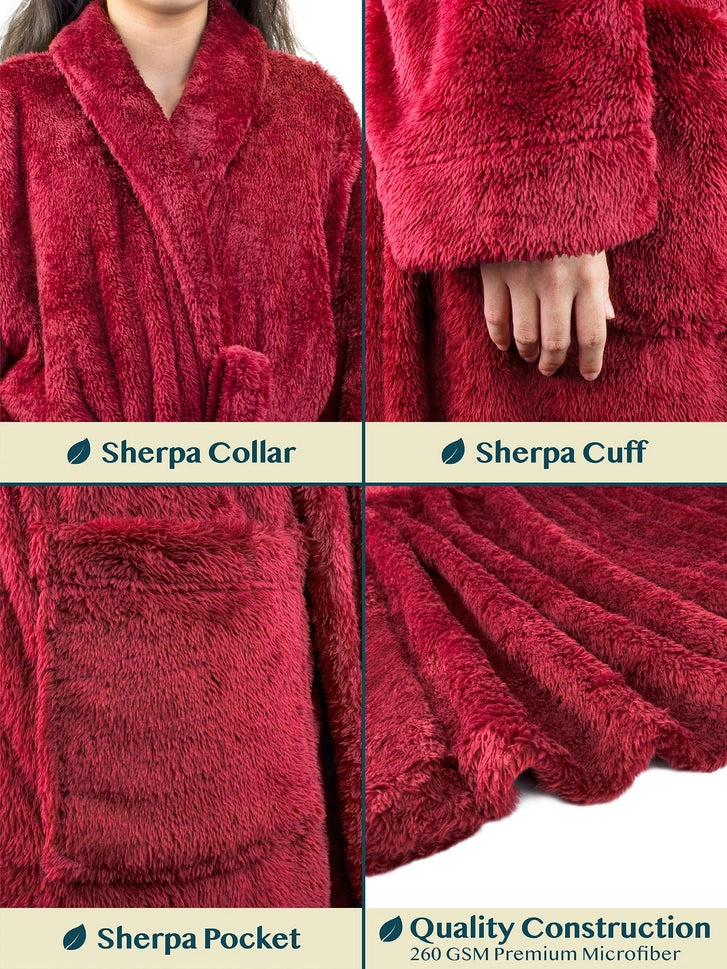 Designed for both comfort and practicality, this robe features a matching sherpa collar, cuffs, and roomy pockets for an elevated yet relaxed feel. A waist strap allows you to adjust for the perfect fit, while durable 260 GSM premium microfiber polyester ensures softness that lasts through countless washes. Whether you’re enjoying coffee by the window, winding down with a book, or giving the gift of comfort, this robe is a timeless essential.