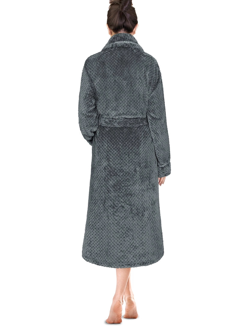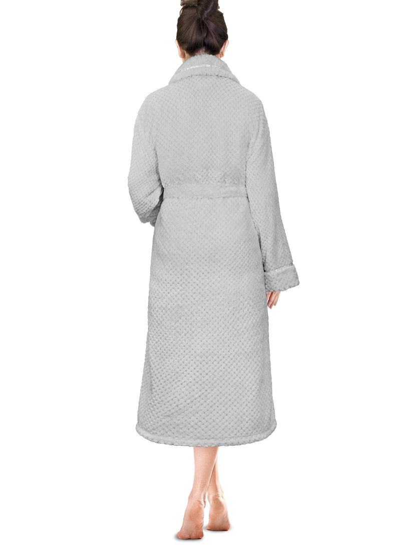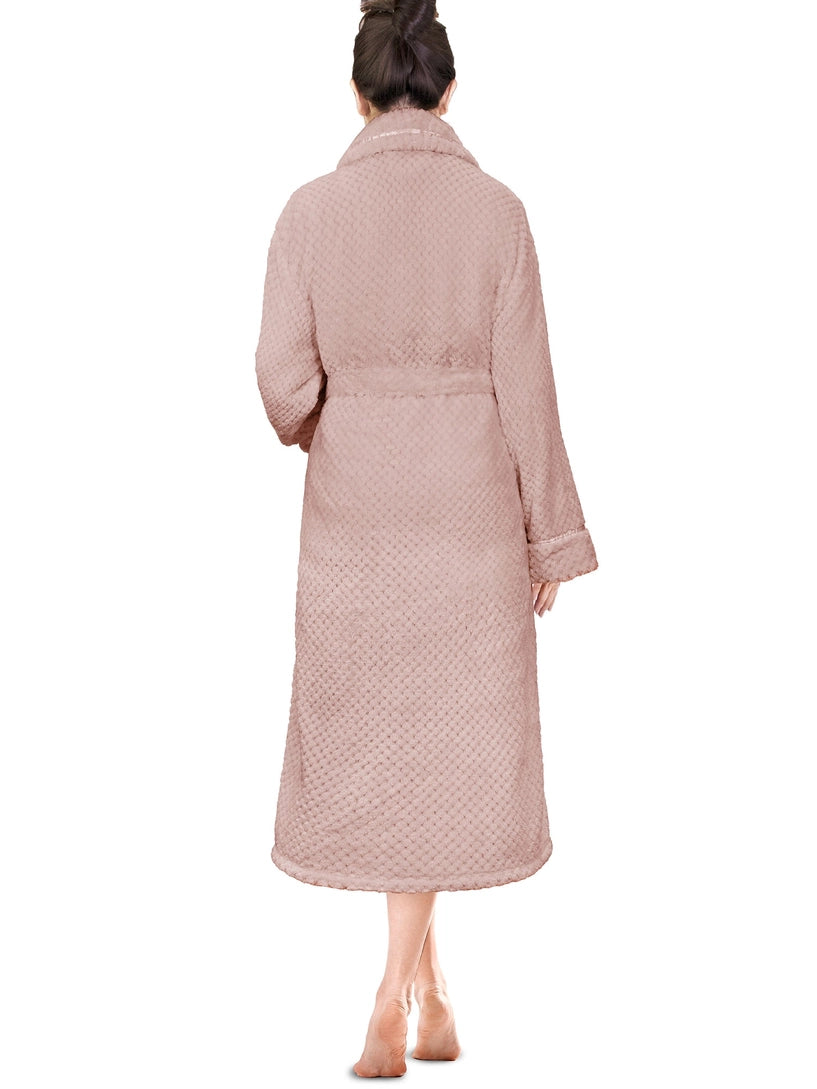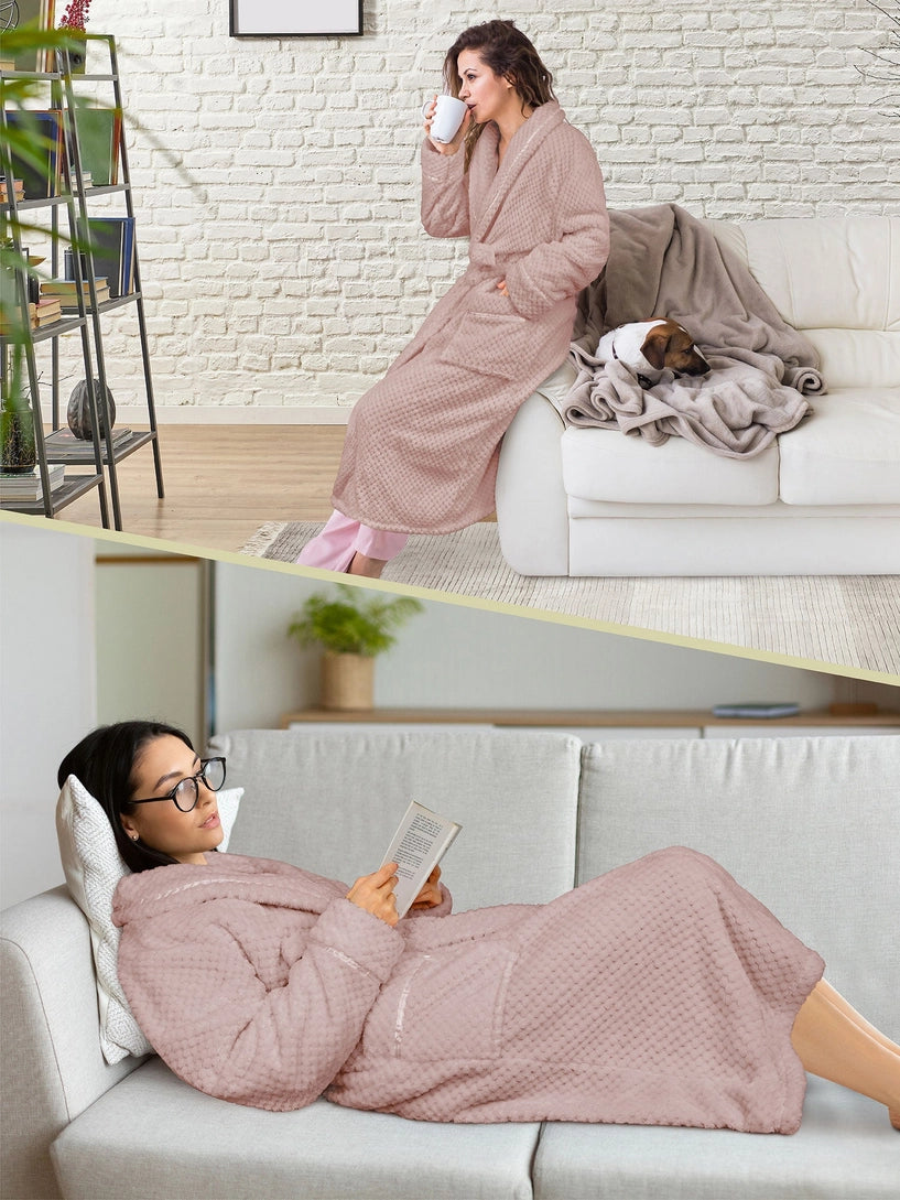Satin trim along the collar, cuffs, and pockets adds a subtle touch of elegance, with a slight sheen that beautifully contrasts the textured fleece. A matching waist strap ensures the perfect fit, while roomy pockets keep your essentials close at hand. Made from 280 GSM premium microfiber polyester, this robe combines durability, comfort, and style — making it not only a daily indulgence but also a thoughtful gift for someone special.