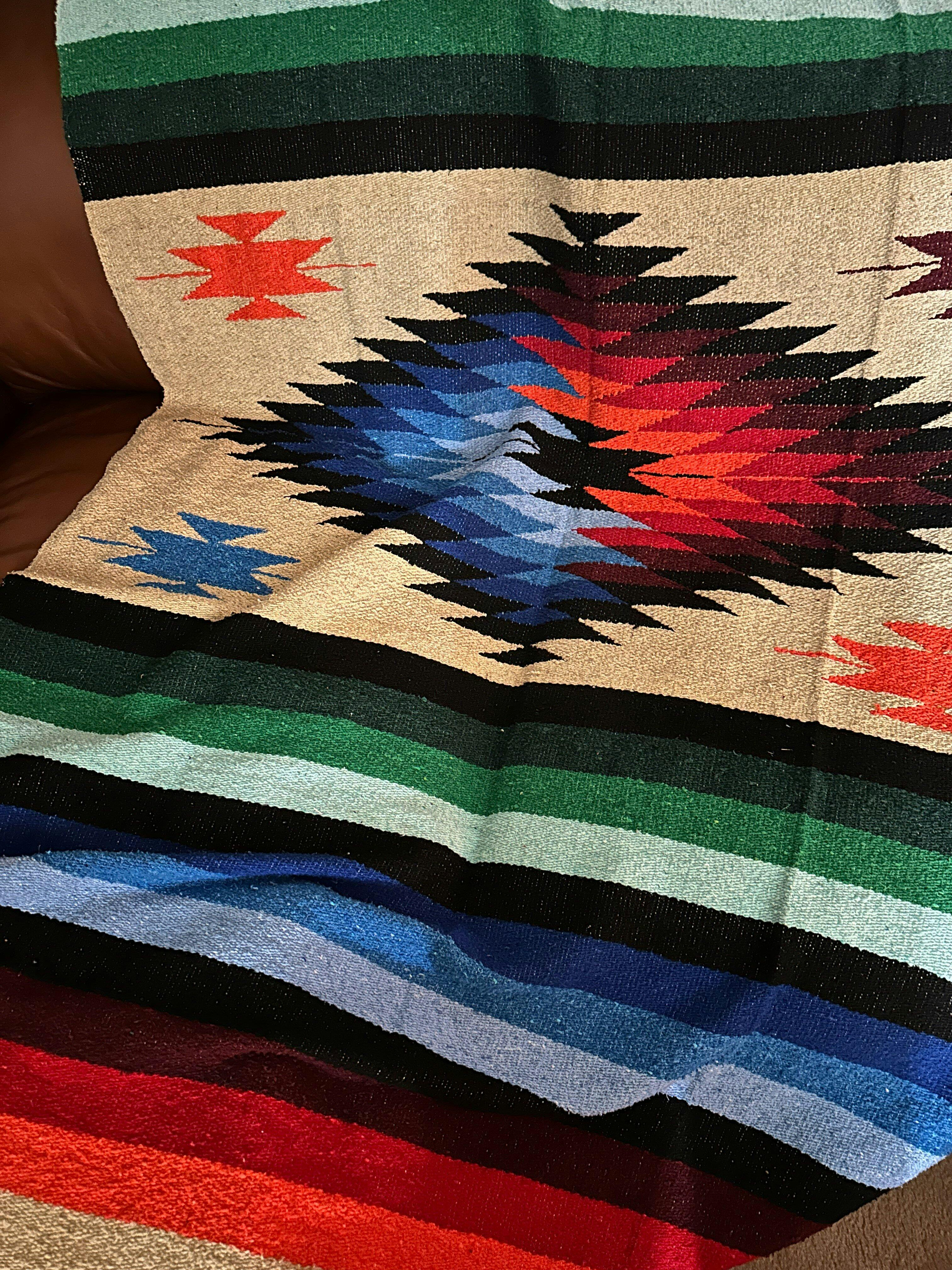 Celebrate tradition and craftsmanship with the West Path Aztec Diamond Mexican Falsa Blankets. Handwoven in Mexico, they feature a striking central diamond motif framed by rich, colorful stripes — and they’re softer than you’d expect from a traditional falsa. Heavier and thicker than standard falsas, they offer a cozy weight that’s perfect for layering on a bed, folding across a sofa, or wrapping up by the fire.