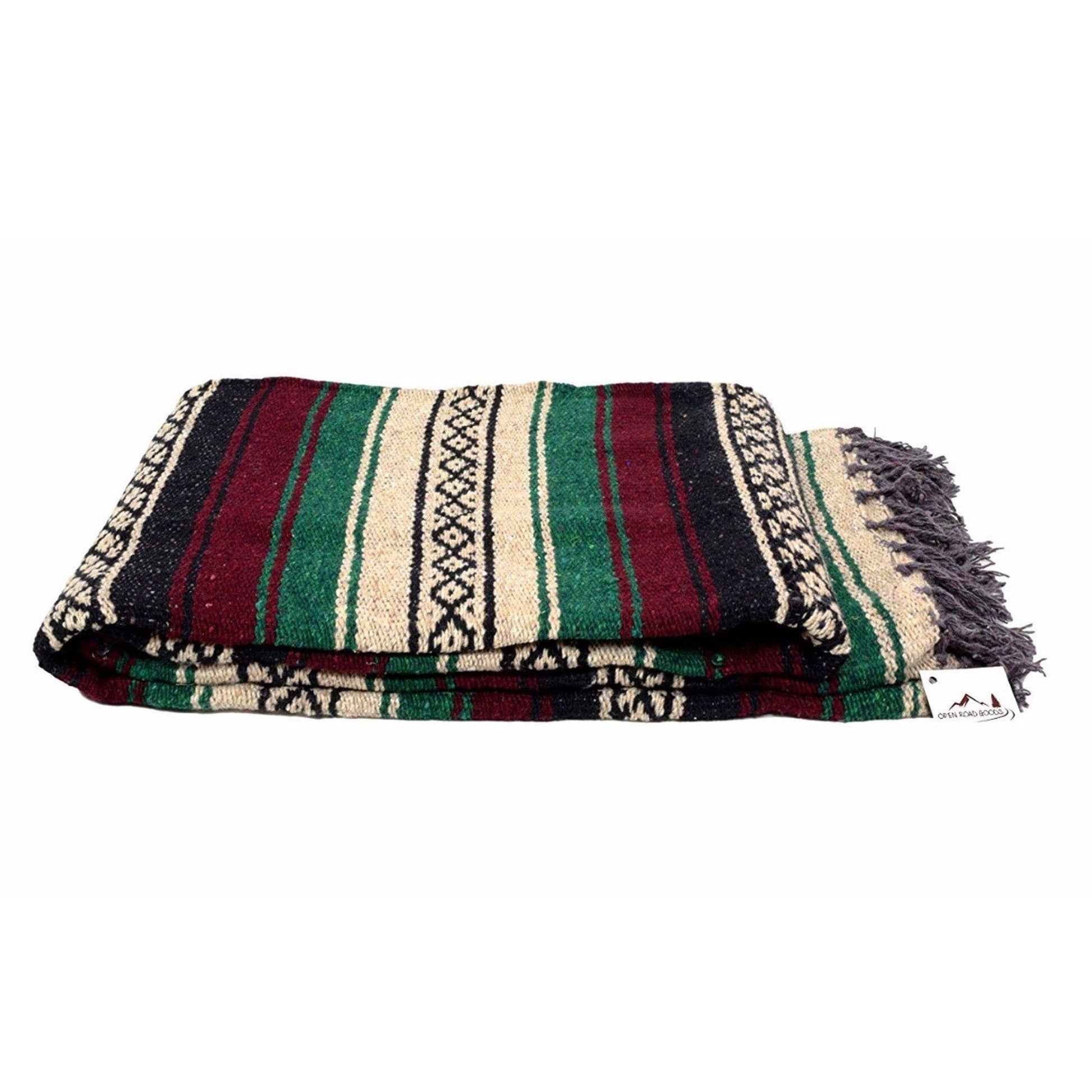 West Path Mexican Grande Falsa Blanket / Maroon & Viridian Green